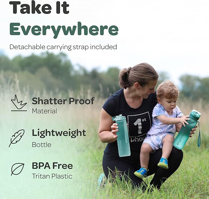 - 🌱SAFE, NON-TOXIC, DURABLE This shatterproof, light and reusable water bottle is made of 100% BPA Free Tritan plastic. You can relax and enjoy your water clear of harmful chemicals, plastic taste or bad smell!
