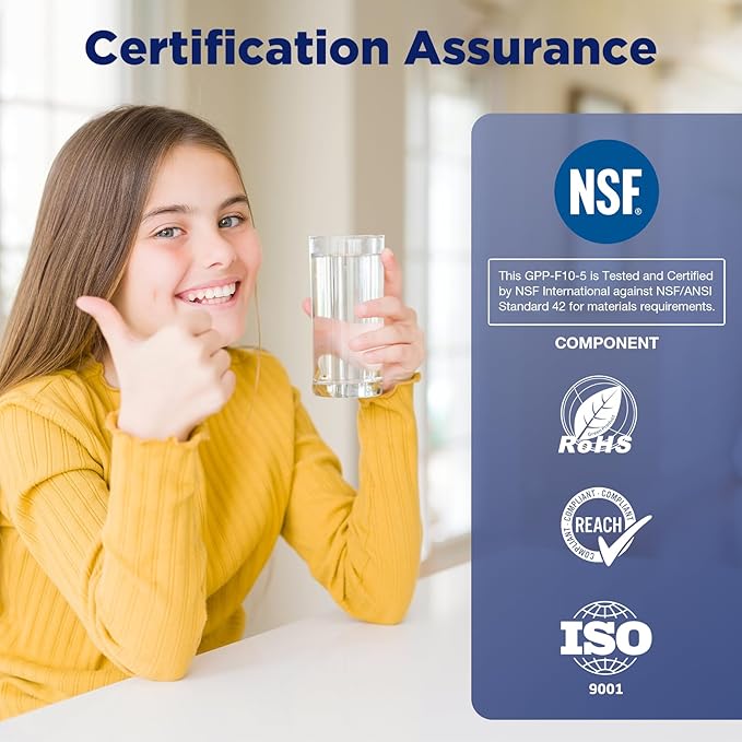 - Highly Quality Filtration: Food Grade material meets, 100% pure polypropylene microfibers with NSF certified, ensures the quality of your drinking water.