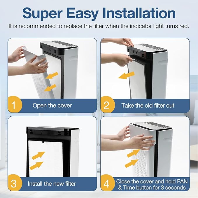 - EASY TO INSTALL: When the light turns RED and keeps flashing, this is a reminder to check and change the aph260 air filter. Simply take the older and dirty APH260/APH320 filter off and replace it with the Cabiclean filter. Then reset the replacement alert, please hold the timer and fan speed buttons for 3 seconds until the LED stops flashing while the unit is on.