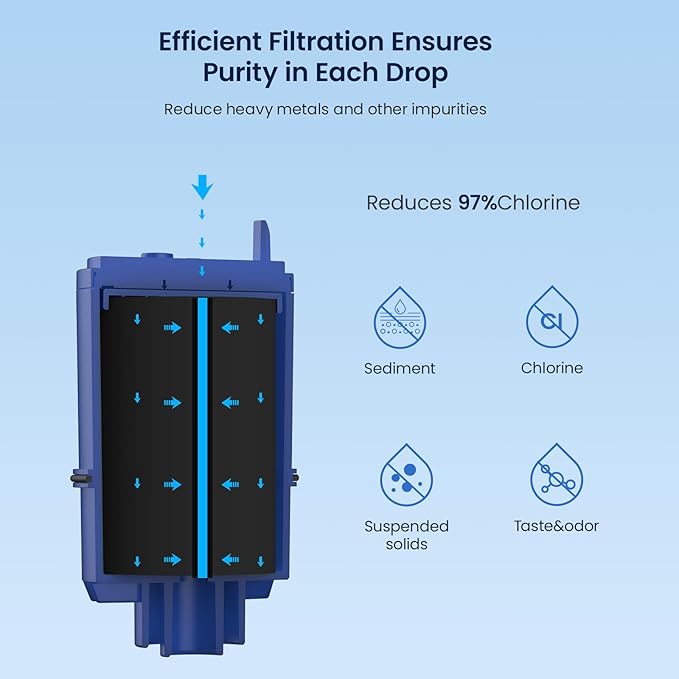 - Product Benefits : Effectively removes chlorine, heavy metals, and other impurities for improved water taste and quality Effectively removes chlorine, heavy metals, and other impurities for improved water taste and quality