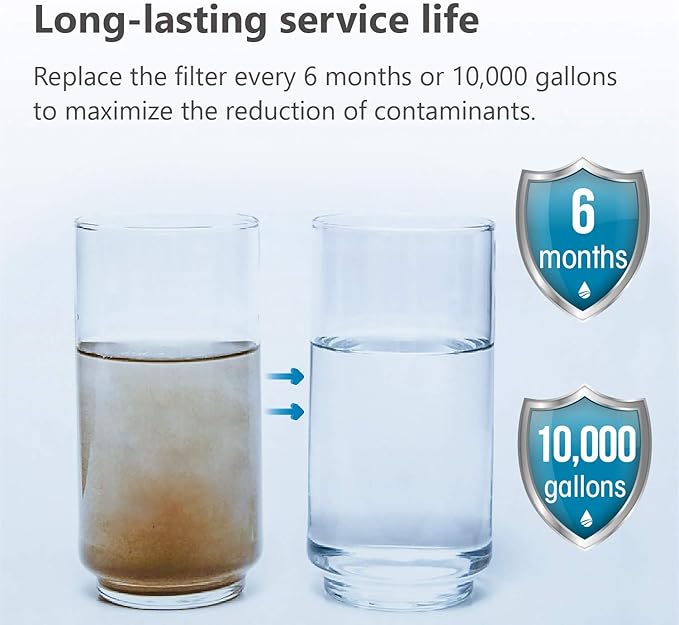 - 【Prolonged lifespan】: It is recommended that you change this filter every 6 months or 10,000 gallons, which will vary based on your water conditions.