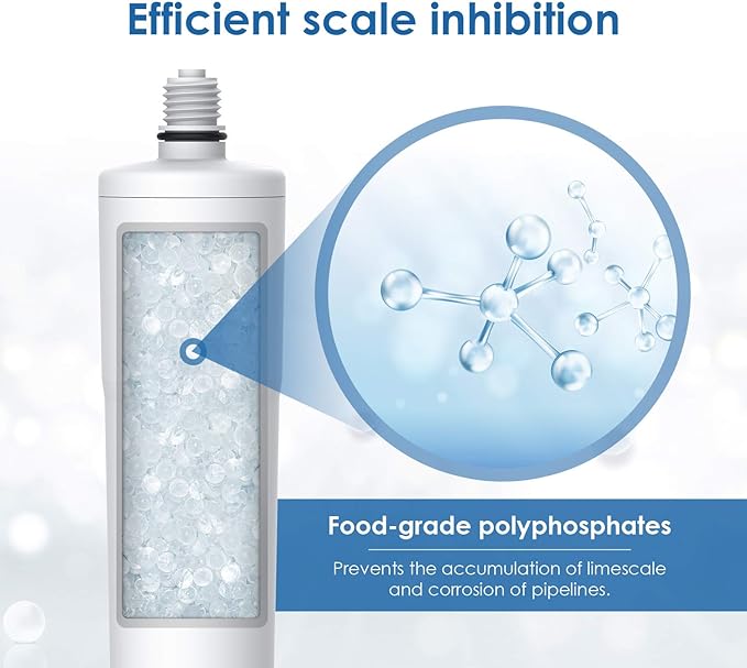 - 【Protects your water-using appliances】: With the premium polyphosphates in this scale inhibitor cartridge, you can worry less about the accumulation of corrosion and limescale, which may block your pipelines. This efficient filter media will keep your water-using appliances—like dishwashers, heaters, etc.—working optimally and for the longest time possible.