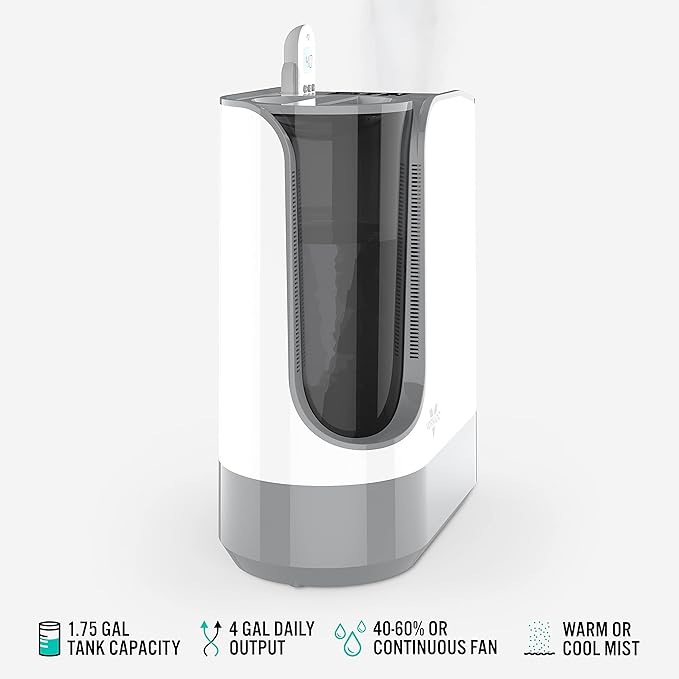 - HUMIDIFY DIFFERENTLY — Powerful and efficient fan-assisted ultrasonic humidification provides even whole room coverage up to 900 sq. ft.