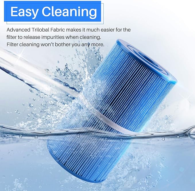 - 【Easy Cleaning】The Trilobal Fabric Structure filter material makes it easy to release impurities when cleaning the filter, the filter is like a new one after cleaning. It is recommended that you clean cartridges every 2 weeks to maximize your spa's performance.