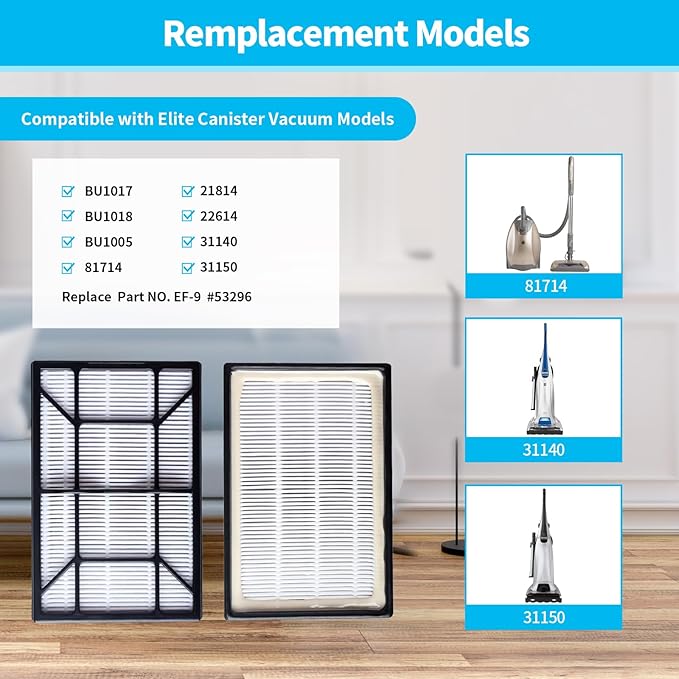 - ππ’π π£ππ§ππππππ§π¬ - This EF-9 heap vacuum filter fits the upright vacuum models #EF-9, 53296, 40195 and canister vacuum cleaners #22614, 31140, 10065.