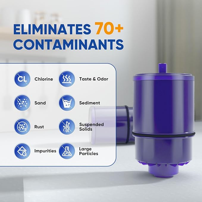 - ❄️Authoritative Certifications - The filter is certified against NSF/ANSI 42 & NSF/ANSI/CAN 372 Lead-Free by IAPMO, filtering out 99% Chlorine, odor and improve water taste significantly.