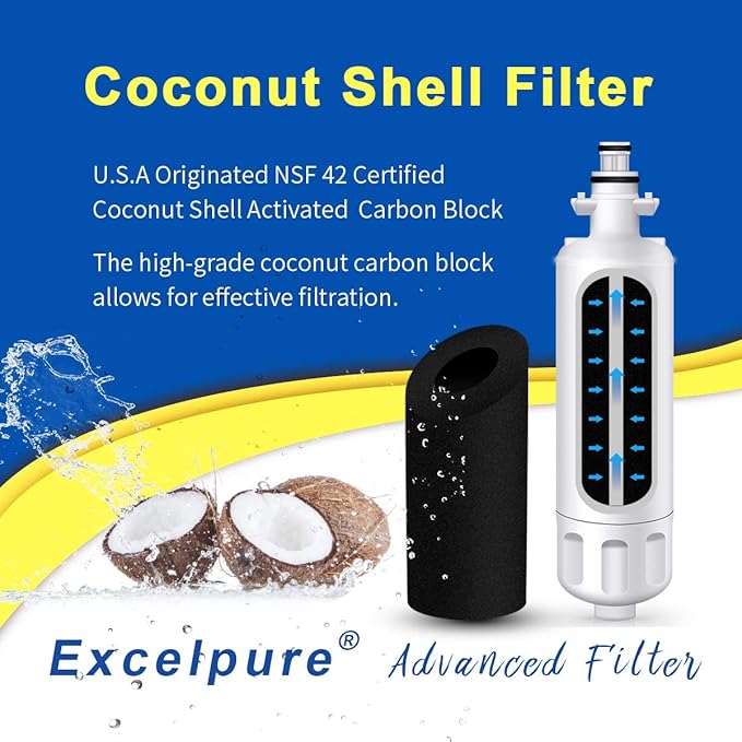 - Excel Quality- Top-quality natural coconut shell-activated carbon, with 0.5 Micron, filters out 99.99% Turbidity, particles, and sediment. You don't need any professional knowledge to judge the quality of the water filter, the purity of the filtered water, and the good taste tell you that you have chosen a good filter.
