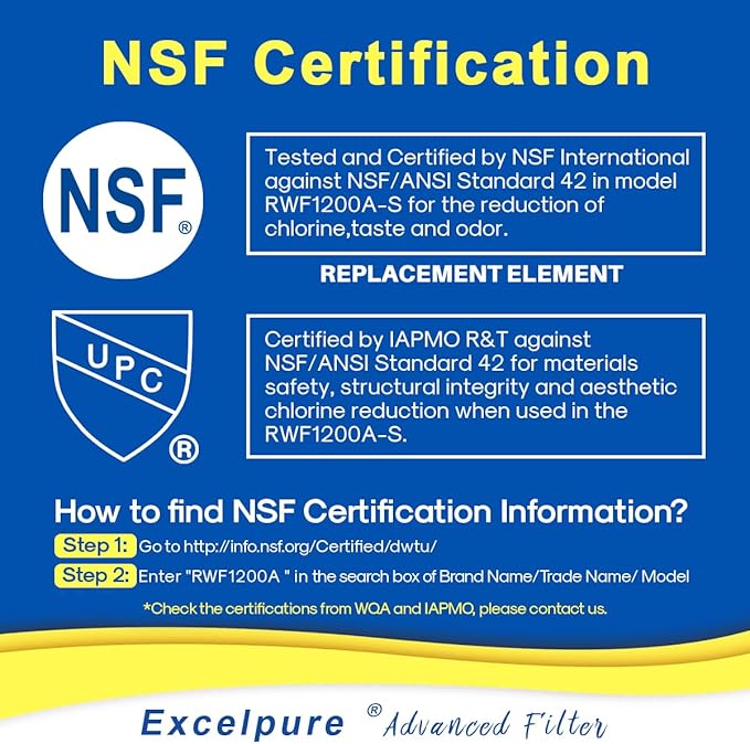 - Excel Certifications - Certified to NSF/ANSI 42 to reduce 99% Chlorine and color, Certified to NSF/ANSI/CAN 372, Lead-Free materials, European TUV for BPA-Free and ROHS, REACH, Australian Water Mark.