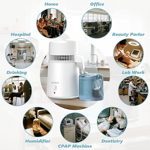 - WIDE APPLICATION: The water distiller can be used for making distilled water for humidifiers, steamers, making drinks, etc. And it comes with cleaning powder, charcoal sachets and a water outlet soft catheter. Low noise and you can run the unit overnight.