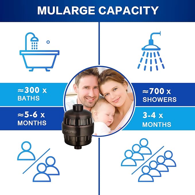 - 🚿【Upgraded 18 Stages High Output Shower Filter】 This updated shower head filter, with 18 stages of filtration layers, can provide all-around water purification for your shower