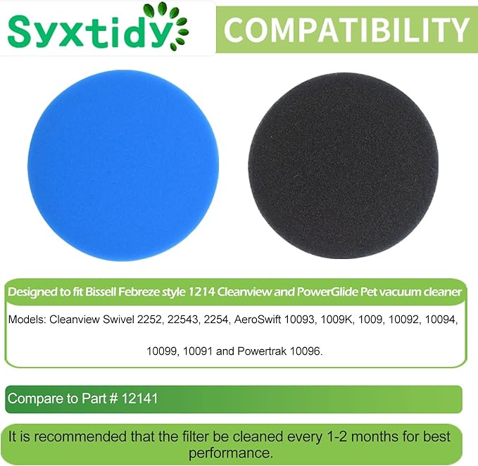 - COMPATIBLE MODEL - Our 12141 replacement foam filter designed to fit bissell febreze style 1214 cleanview and powerglide pet vacuum cleaner, models: cleanview swivel 2252, 22543, 2254, aeroswift 10093, 1009k, 1009, 10092, 10094, 10099, 10091 and powertrak 10096.Compare to Part # 12141