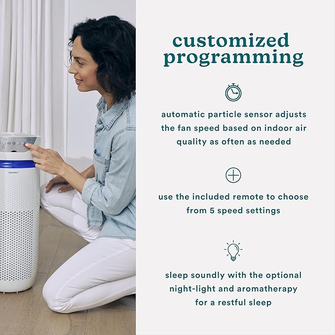 - SET YOUR PERFECT MOOD – The perfect bedtime mood can be set in seconds with the optional night-light; add your favorite scent to the HEPA home air purifiers with 3 included essential oil pads and pair with Ellia Essential Oils (sold separately)