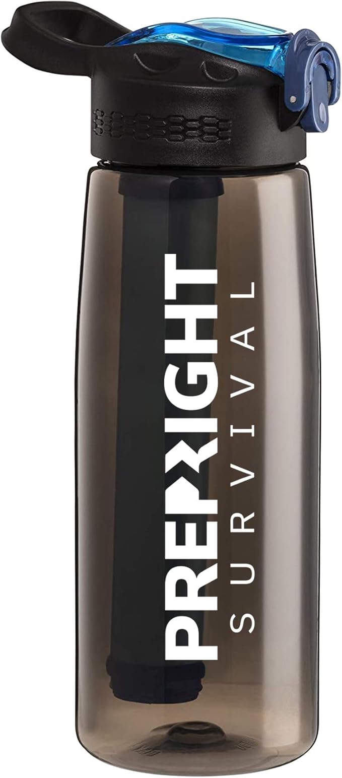 Survival – 4-Stage Water Filter Bottle, BPA-Free 22oz Camping Water Bottle with Built-In Compass, Travel and Emergency Preparedness Gear, Black