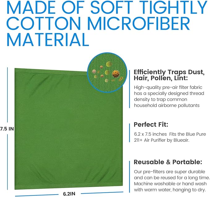 4 Pack 211+ Replacement Washable Pre-Filters for Blueair Blue Pure 211+ air purifier, Removes Pollen, Dust, Pet Dander, Color include Lunar Rock, Diva Blue, Lavender Purple, Forest green