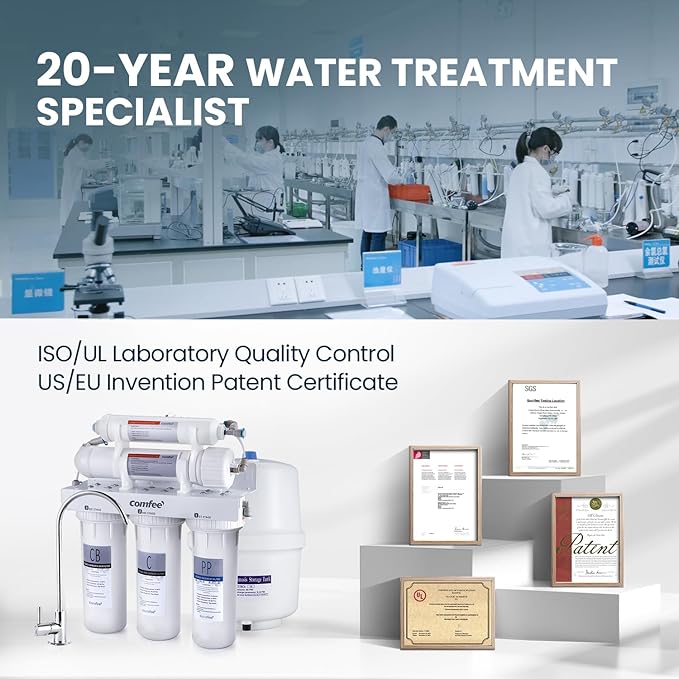 - [ 20-Year Professional Experience ]: COMFEE’ has 20 years of experience as a professional water treatment manufacturer dedicated to R&D and manufacturing. Enjoy fresh-taste water even better than most bottled water with COMFEE' reverse osmosis system and use the great-quality water for making delicious coffee, crystal-clear ice and healthy baby formula every time you turn on the faucet.