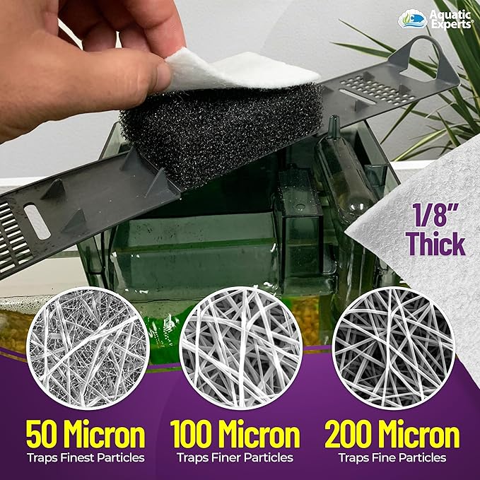 - SPARKLING CLEAR WATER: Our 200 micron filter pad has a dense fiber network to effectively trap fine to extra fine particles floating in your aquarium water to produce sparkling clear water.