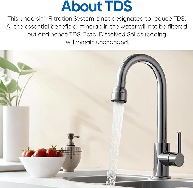 - 𝗪𝗮𝗿𝗺 𝗧𝗶𝗽𝘀 - PUREPLUS WFC5300A water filter retains the beneficial minerals in the water and does not change the TDS value. If you want to remove TDS, please search "B092L97LD7" for a RO system. For smoother installation, please make sure to insert the hoses securely.