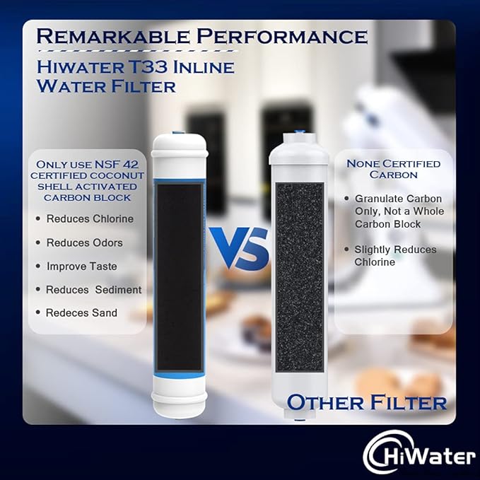 - 2 Pack 1/4‘’ quick-connectors Inline Coconut Grade Activated Carbon Post Filter. 0.5 micron coconut shell activated carbon block with multiple filtration technologies, can effectively to reduce fluoride, limescale, and chlorine, taste and odor, rust, suspended solids, and colloids.