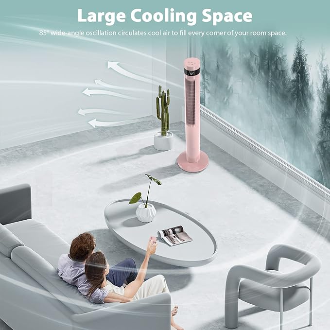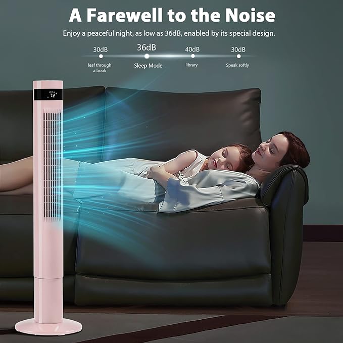 - FAST COOLING DOWN & EASY TO USE : Turn on this quiet tower fan, the quite room fan will cool down the temperature in 3 seconds and give you instant coolness. User manual included.