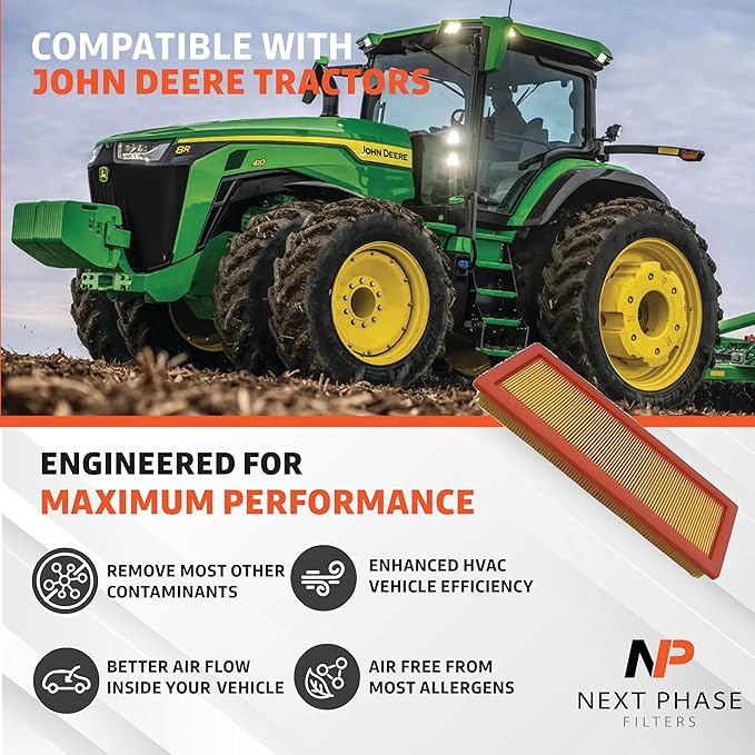 Cabin Filter - Compatible with John Deere Equipment - Forwarders, Loaders & Tractors - Cabin Air Filter for Efficient Recirculation Air Mode - Replaces O.E. RE195491; Baldwin PA5768; Wix WP10188