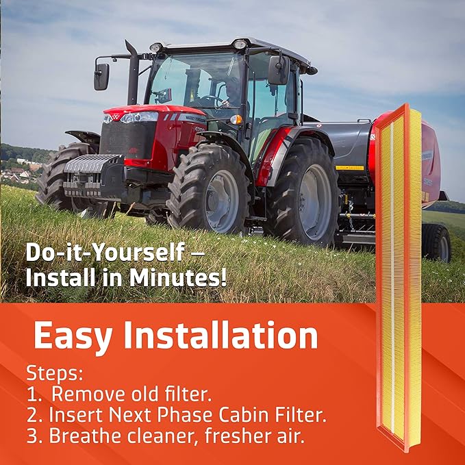 Cabin Filter - Pack 1 - Compatible with Agco Allis Tractors, Challenger Farm Tractors, Massey-Ferguson Tractors - Cabin Air Filter Replacement – Replaces O.E. 3388840M2; Baldwin PA5626; Wix WP10069