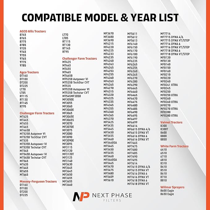 - Pack of 1 Cabin Filter Suitable for Tractors - Our replacement cabin filter is compatible with Agco Allis Tractors, Challenger Farm Tractors, Massey-Ferguson Tractors, Valmet Tractors, and White Farm Tractors. For cross reference, refer to Baldwin PA5626; Wix WP10069. Fits O.E. 3388840M2