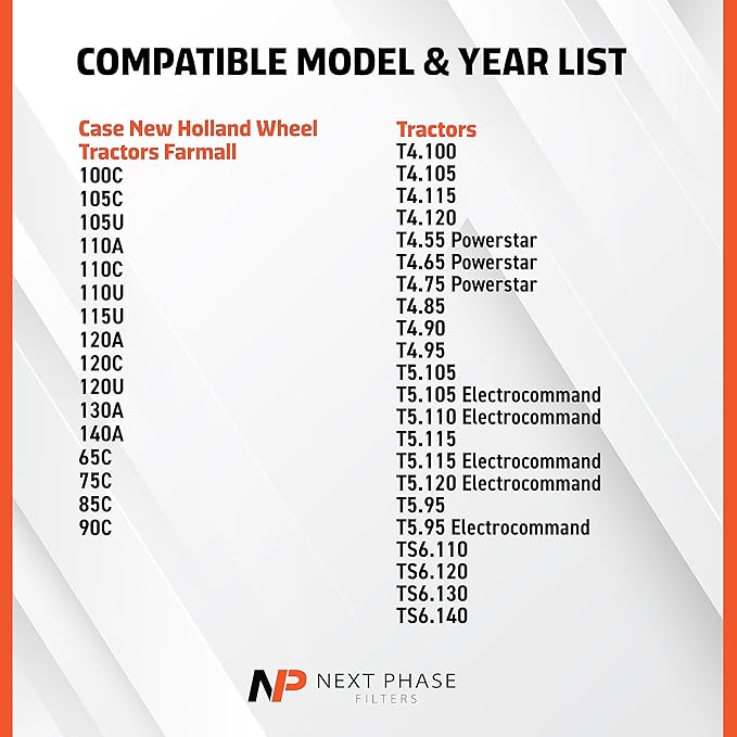 - Compatible Devices : Case New Holland Wheel Tractors, T4.100, T4.105, T4.115, T4.120, T4.55 Powerstar, T4.65 Powerstar, T4.75 Powerstar, T4.85, T4.90, T4.95, T5.105, T5.105 Electrocommand, T5.110 Electrocommand, T5.115, T5.115 Electrocommand, T5.120 Electrocommand, T5.95, T5.95 Electrocommand, TS6.110, TS6.120, TS6.130 & TS6.140, Farmall 100C, 105C, 105U, 110A, 110C, 110U, 115U, 120A, 120C, 120U, 130A, 140A, 65C, 75C, 85C & 90C Case New Holland Wheel Tractors, T4.100, T4.105, T4.115, T4.120, T4.55 Powerstar, T4.65 Powerstar, T4.75 Powerstar, T4.85, T4.90, T4.95, T5.105, T5… See more