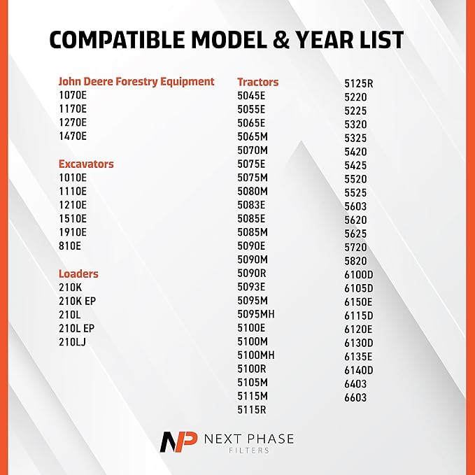 - Compatible Devices : John Deere Forestry Equipment 1070E, 1170E, 1270E & 1470E, Forwarders 1010E, 1110E, 1210E, 1510E, 1910E 810E, Loaders 210K, 210K EP, 210L, 210L EP 210LJ, Tractors 5045E, 5055E, 5065E, 5065M, 5070M, 5075E, 5075M, 5080M, 5083E, 5085E, 5085M, 5090E, 5090M, 5090R, 5093E, 5095M, 5095MH, 5100E, 5100M, 5100MH, 5100R, 5101E, 5105M, 5115M, 5115R, 5125R, 5220, 5225, 5320, 5325, 5420, 5425, 5520, 5525, 5603, 5620, 5625, 5720, 5820, 6100D, 6105D, 6150E, 6115D, 6120E, 6130D, 6135E, 6140D, 6403 6603 John Deere Forestry Equipment 1070E, 1170E, 1270E & 1470E, Forwarders 1010E, 1110E, 1210E, 1510E, 1910E 810E, Loaders 210K, 210K EP, 210L… See more