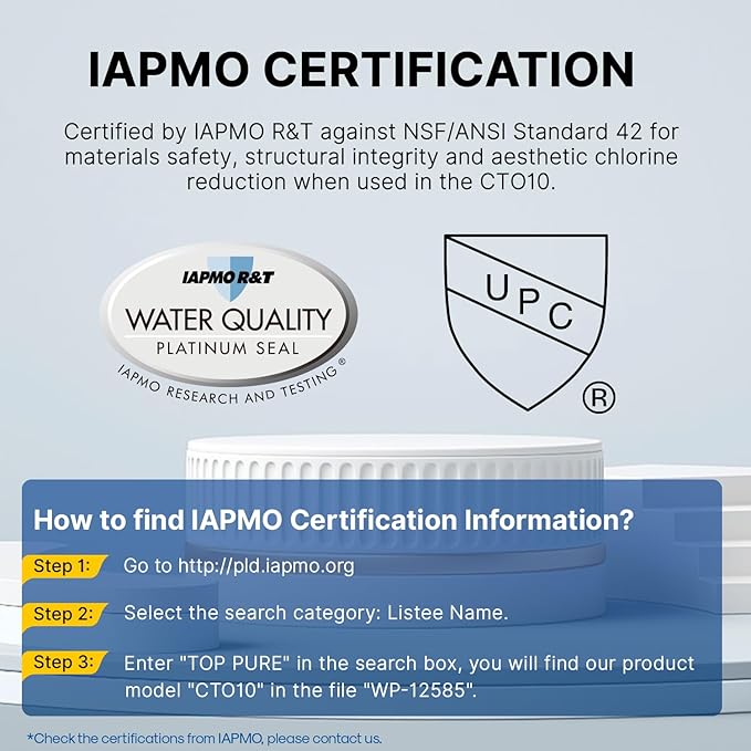 - Excel.Quality - Food Grade Material Meets European EC1935-2004 Regulations, Australia Water Mark, ROHS, REACH, BPA FREE Certified. This kind of filter is recommended for tap water filtration. The filter reduces up to 99% of Chlorine, sand, rust, sediment, and color.