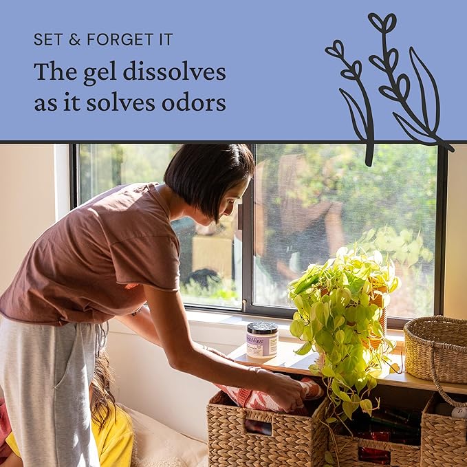 - Keep a Lavender Gel on shelves and countertops in baby rooms, bedrooms, bathrooms, living rooms, or kitchens to absorb odors.