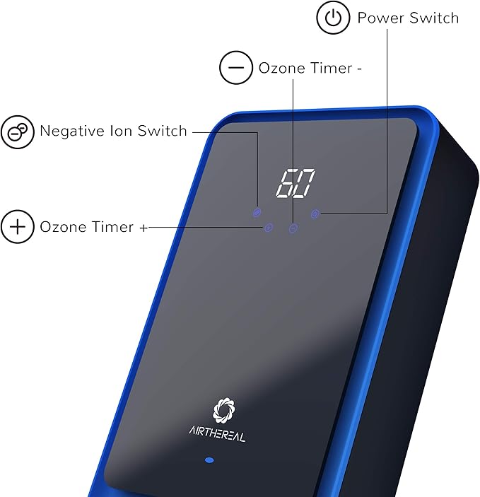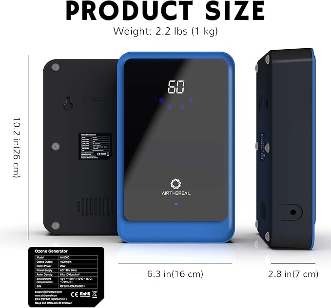 Airthereal AH1000 Portable Ozone Machine for Water and Air - 1000 mg/h, Multipurpose Liquid Ozonator with Negative Ion and Timer