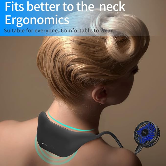 - ❄️【Hands Free】The bottom design fits your neck perfectly, the twin neck fan 360° rotation adjust the airflow angle at will. It is suitable for travel, work, shopping, cooking, fishing and other scenarios, truly hands free.