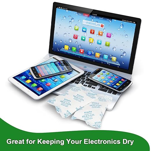 - Higher Absorption Capacity:Silica Gel Packets Desiccant can Absorb 40% of its Weight in Water Vapor,Silica Gel Packets Provides Superior Absorption and will Remain Dry at Maximum Saturation