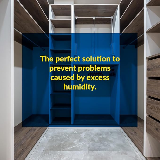 - OPTIMAL ENVIRONMENT: These hanging moisture absorbers create an optimal atmosphere by maintaining a recommended relative humidity level of 50-60%. They do not over-dry the air and improve air quality, leaving a fresh and clean feeling. Ideal for closets, basements, storage rooms, and laundry areas. Made in Spain.