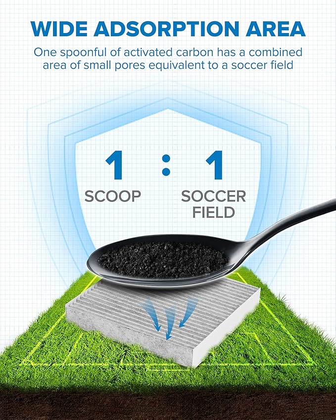 - Enjoy Fresh Air: Activated carbon cabin air filter quickly adsorbs unpleasant odors from outside the ventilation system, provides a more comfortable interior environment for the driver and passengers without adding chemical odor neutralizer