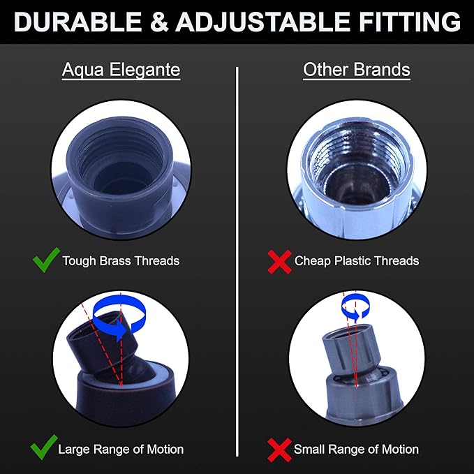 - π¦ WE STAND FOR shower heads that are installed once and then enjoyed for many years. That is why we use DURABLE BRASS FITTINGS that don't crack or leak like most plastic threads. And our ball joints allow an EXTRA RANGE OF MOTION, so you can point the shower head exactly where you want it. We are real people who use our own products every day. We expect the BEST FOR OUR FAMILY and want the SAME FOR YOURS.