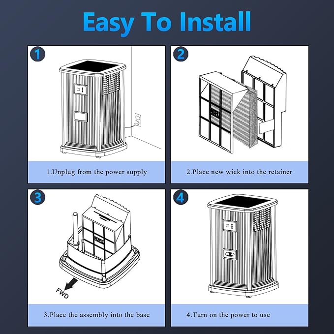 - π₯ππ£πππππ ππ‘π§ π₯πππ¬πππ & πππ¦π¬ ππ‘π¦π§πππππ§ππ’π‘ - Funmit 1043 humidifier filters fill humidifier tank with distilled water. We recommend you to replace the filter every 2-3 months for optimal performance (depending upon your usage). It is fairly easy to install the 1043 humidifier filter, no tools required. Simply run the humidifier out of water. Remove the top, there is a frame you need to remove. Remove the old wick, replace with new, put the frame on the wick