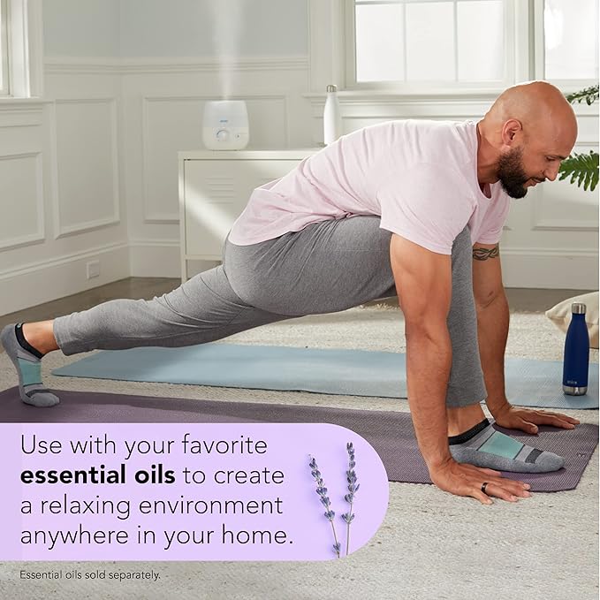 - ESSENTIAL OIL DIFFUSER – This small humidifier is also an essential oil diffuser. You can add essential oils directly to the water tank for relaxation and aromatherapy. Essential oils not included.