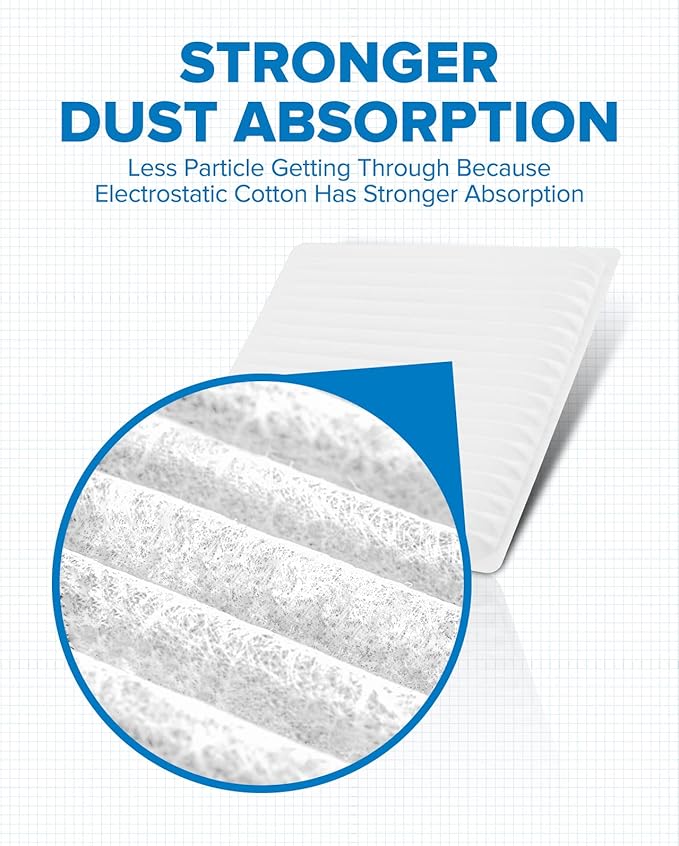 - Enhances HVAC Performance: The special structure of the long-fiber layer electrostatic cotton makes the dust-holding area times higher than other flat materials, with enough gaps for air passage to improve the heating and cooling efficiency of HVAC and prevent musty odors from forming inside the car