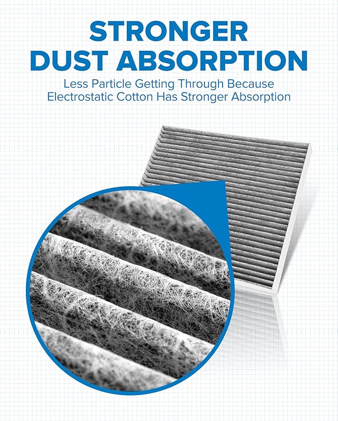 - Keep Clean&Fresh Air: PHILTOP cabin air filter has 28 layers of folds and is made of fiber layer electrostatic cotton material, which has a stronger ability to absorb dust. The cabin filter combination with activated carbon helps remove the odor inside the car, provides fresh air for the driver and passengers.