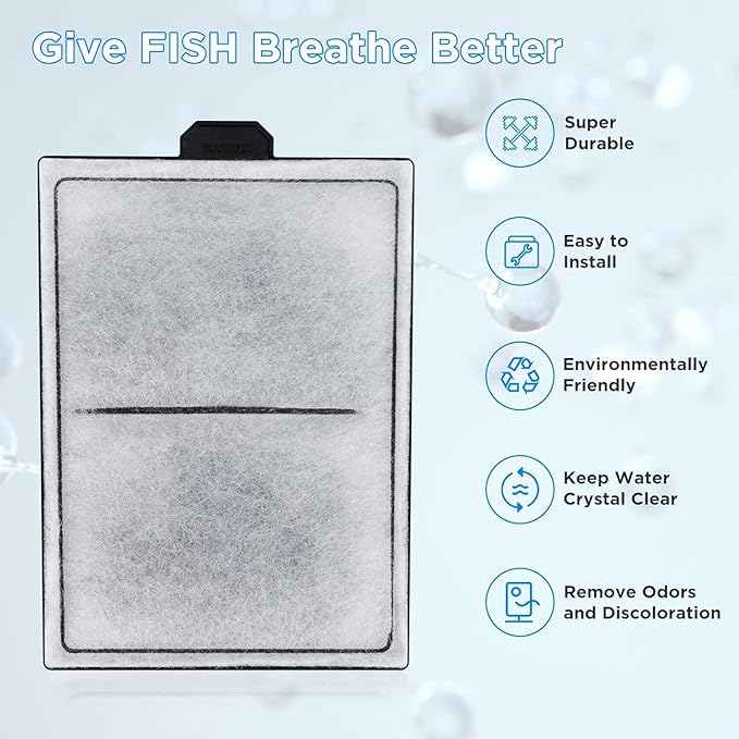 - Excellent Filtration Performance: The filter cotton is made of cotton and carbon and has 3-layer filtering effect, which can filter and absorb 99% of the sundries, so as to keep the water source clean and the healthy growth of fish.