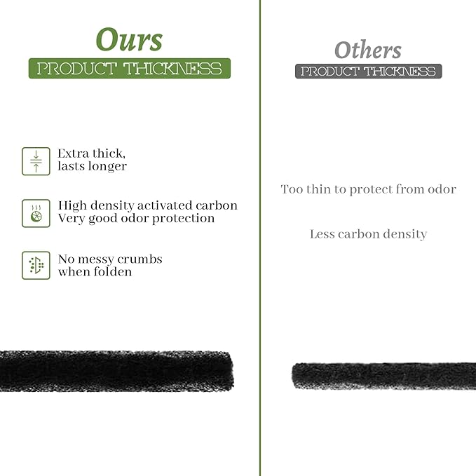 - Safe Material: These activated carbon filters (fibrous) are made of high-quality powdered activated carbon as the adsorption material, and the high-density polymer binding material is used to attach the carbon to the fiber. With the thickness of 1cm (0.4"), the filters can efficiently absorb odors.