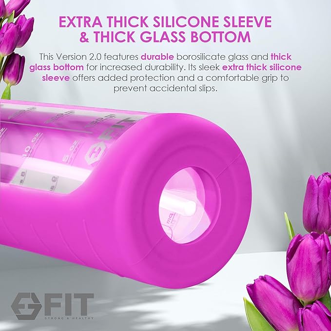 - Upgraded design and fun colors to choose from: Introducing our upgraded original aesthetic water bottle; this new version features an extra thick silicone sleeve, providing added protection, insulation, and a secure grip; crafted from thick borosilicate glass, it's ideal for home, office, or gym use; we've also upgraded one of the lids to a convenient straw lid, perfect for sipping on the go; choose from various colorful removable sleeves to personalize your style; have fun picking your color