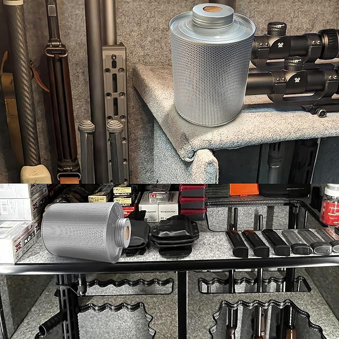 - 【Versatile】: Silica gel container can Protects up to 560 cubic ft of enclosed storage space., including safes, ammo cans, toolboxes, 3D printer filament storage boxes, weapon cases, and closets. It provides an effective solution for moisture prevention in various items such as guns, important papers, legal documents, collectibles, books, jewelry, photo albums, shoes, camera lenses, valuable camera equipment, toys, leather clothing, ammunition, and photographic gear.