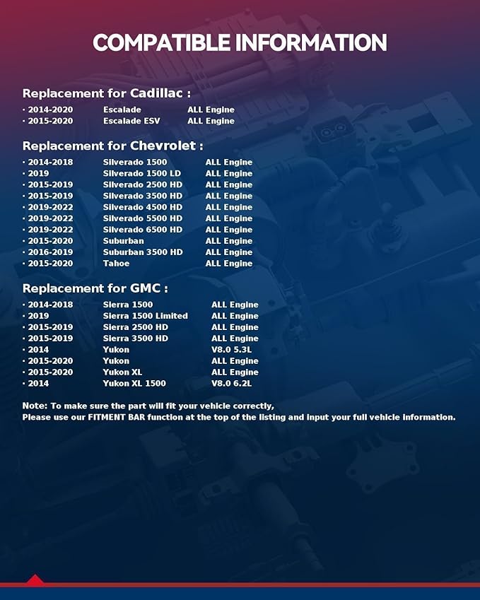 - Compatible List: KAX Automotive Replacement Passenger Compartment Air Filters for Silverado 1500 (2014-2018), Silverado 2500 HD (2015-2019), Silverado 3500 HD (2015-2019), Suburban (2015-2020), Suburban 3500 HD (2016-2019), Escalade (2015-2020), Escalade ESV (2015-2020), Tahoe Flex (2015-2020), Sierra 1500 (2014-2018), Sierra 1500 Limited (2019), Sierra 2500 HD (2015-2019), Sierra 3500 HD (2015-2019), Yukon (2015-2020), Yukon XL (2015-2020)