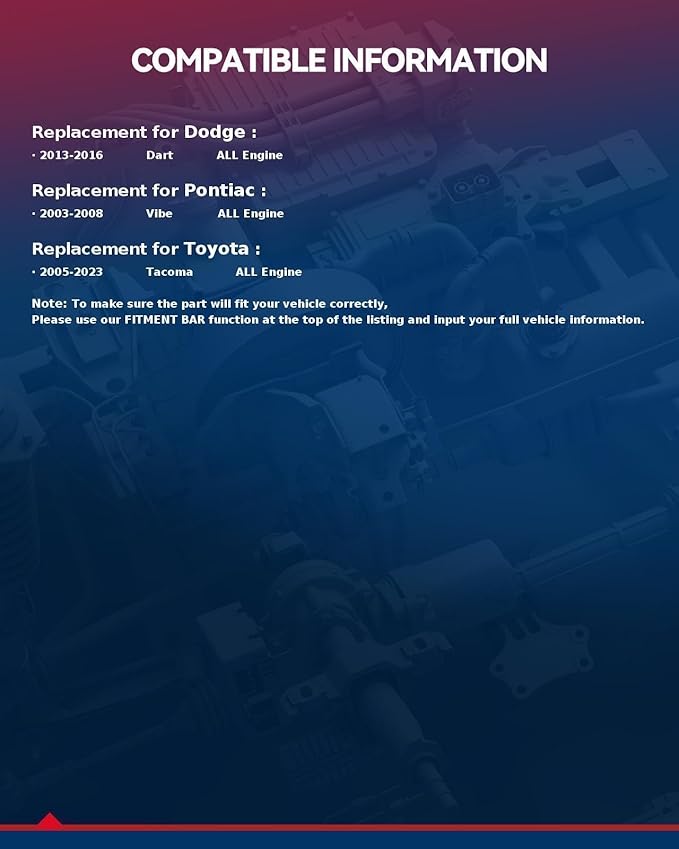 - Compatible List: KAX Cabin Air Filter CF10374 Reference Part NO#CF10374. Replace for Tacoma(2005-2023), Vibe(2003-2008), Dart(2013-2016) cabin filter. Please use the Amazon vehicle fitment system to check if KAX cabin filter fits your car before purchasing