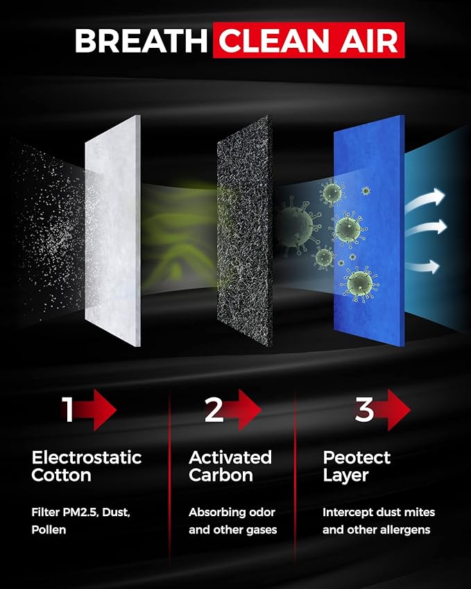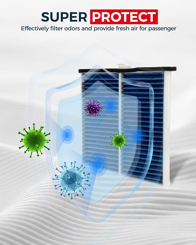 - 2-Layer Activated Carbon: Upgraded version of 2 layers of high-quality coconut shell activated carbon with stronger adsorption capacity, which can effectively remove peculiar smells and nasty odors in the air. Good air permeability, improving the heating and cooling efficiency of the car air conditioner, effectively prevent the musty smell in the car