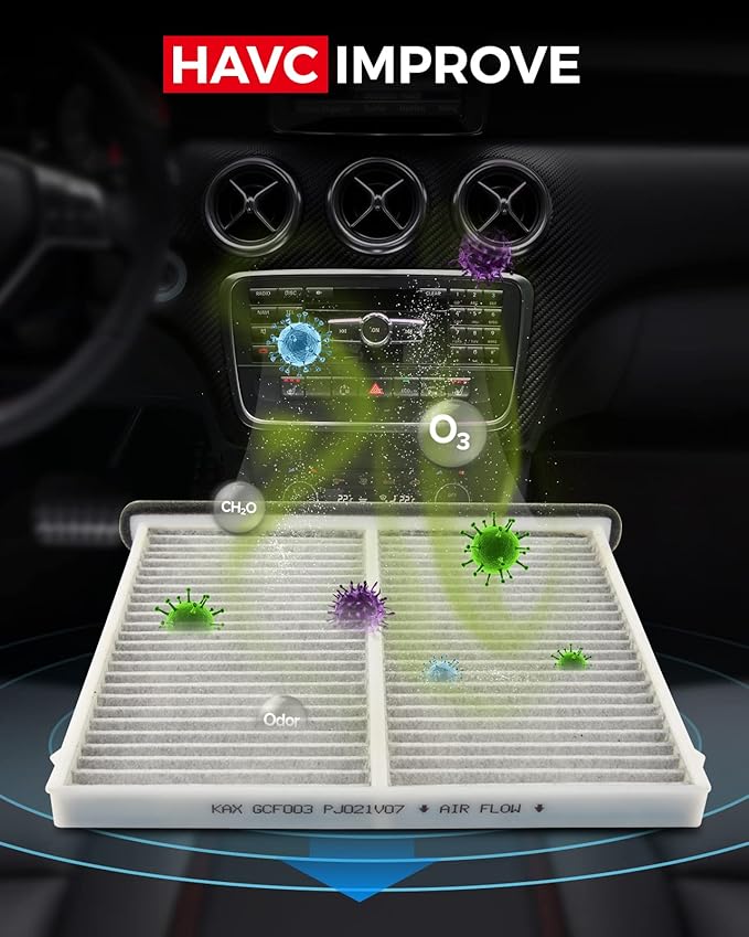 - 99.9% Purification Rate: KAX cabin air filter is made of long-fiber electrostatic cotton, activated carbon, and chemical fabric, which can effectively absorb pollen, dust, soot,and other small particles