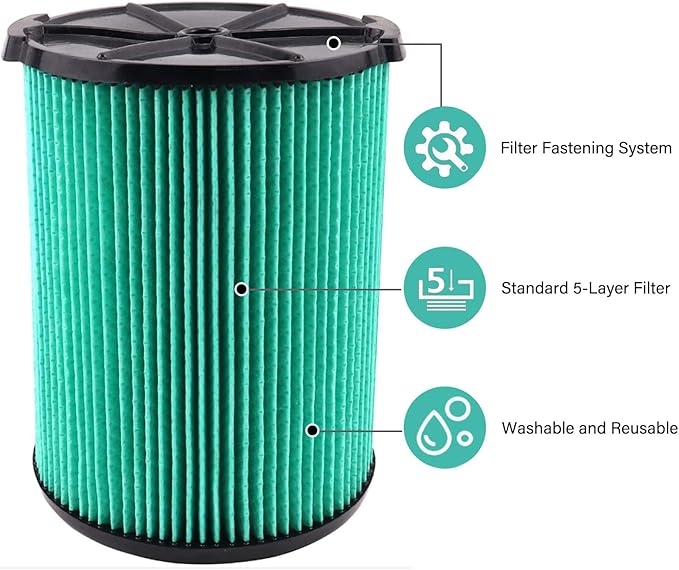 - Package & Diamension: Each package contains 2 pack green VF6000 replacement filter, measures 8.8 X 6.5 inch, perfect size fits for Ridgid 5-20 gallon vacuums cleaners.