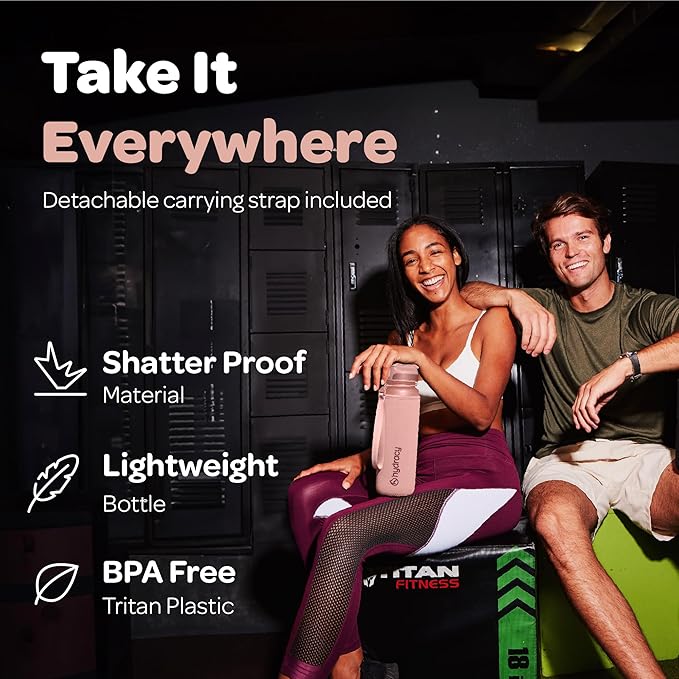 - 🕒MOTIVATIONAL WATER BOTTLE WITH TIME MARKER A quick glance at the intuitive timeline will tell you when to take your next sip throughout the day. No more guesswork, you will conquer your daily water intake goal like clockwork!
